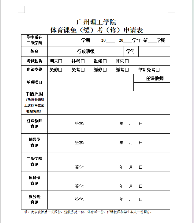 体育课免(缓)考(修)申请表.doc