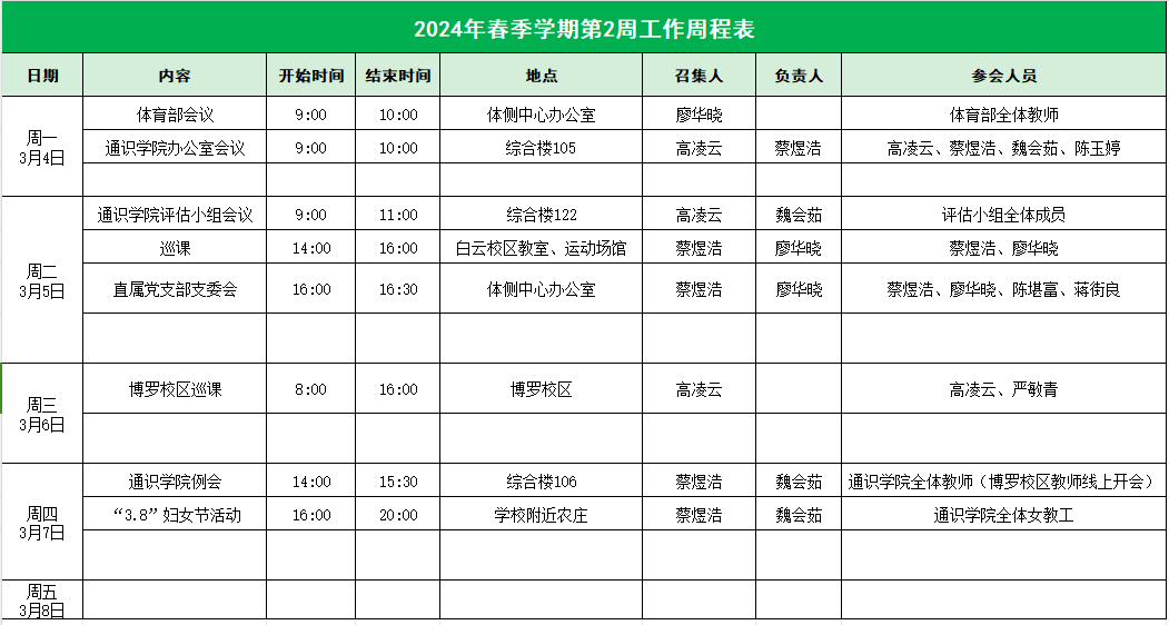 2023-2024学年第二学期公司第2周工作表