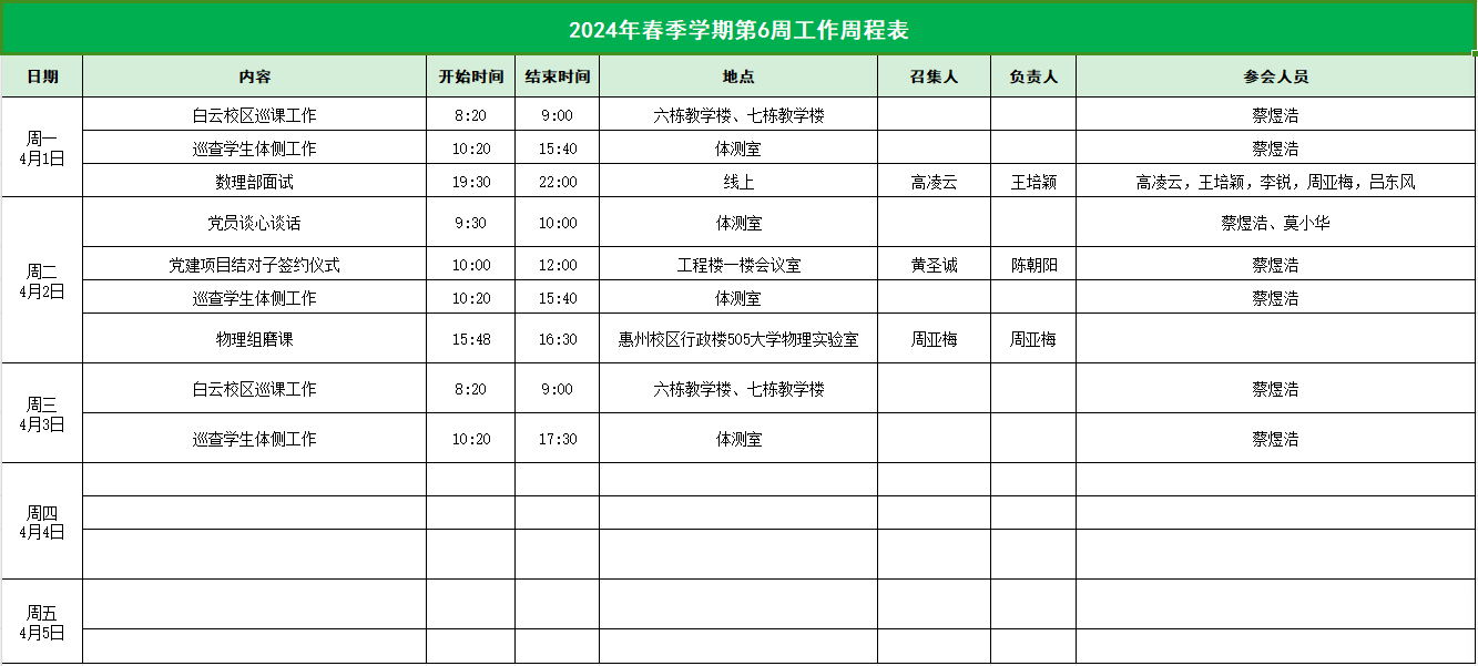 2023-2024学年第二学期公司第6周工作表