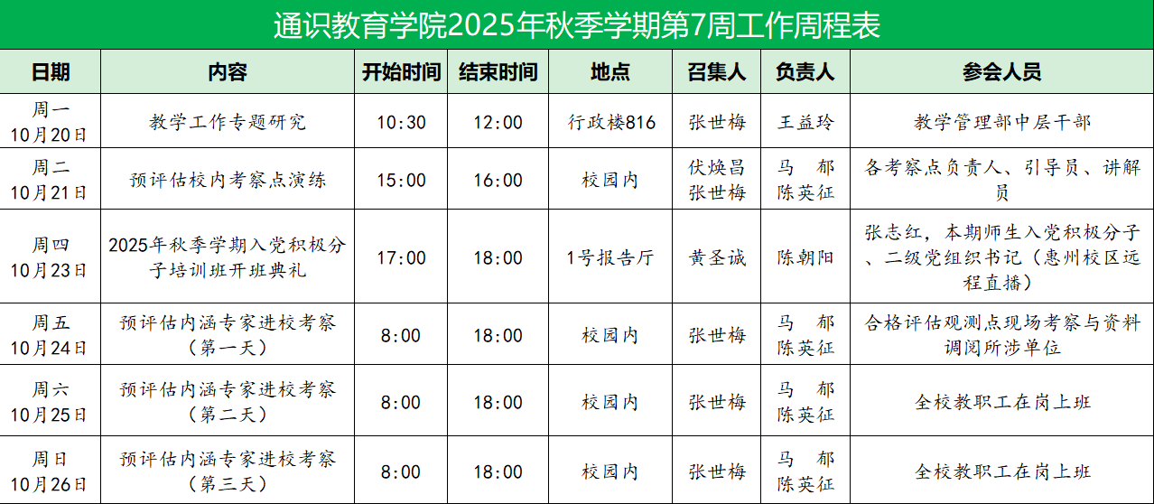 2025-2026学年第一学期公司第7周工作表