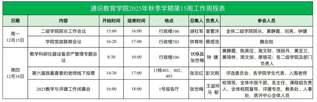 2025-2026学年第一学期公司第15周工作表