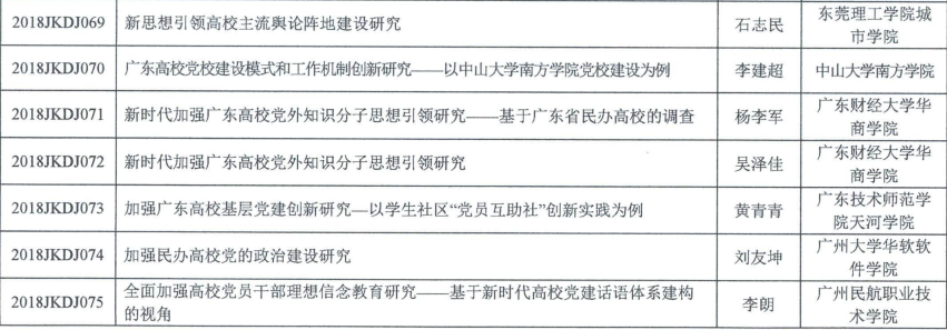 “改革开放40周年党建工作研究项目”是2018年11月份由广东省教育工委、省教育科学规划领导小组办公室组织申报,作为专项纳入广东省教育科学“十三五”规划的重点课题,面向省内1普通高校,共立项104项课题。
