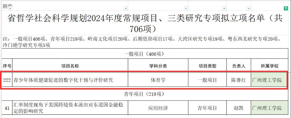 2024年1月25日,广东省哲学社会科学规划办公室正式公布了《广东省哲学社会科学规划2024年度常规项目、三类研究专项拟立项名单》,伟德国际1946获批常规项目一项和青年项目一项,其中由伟德国际1946陈赛红教授牵头申报的《青少年体质健康促进的数字化干预与评价研究》获批省社科规划2024年度常规项目立项。本次立项的成功不仅是对陈赛红教授长期致力于青少年体质健康研究工作的高度认可,也标志着公司在科研工作上取得了突破性进展。