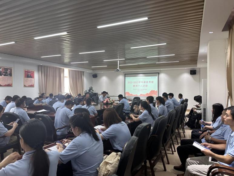 随后,公司办公室和各教研室的教职工从思想政治、师德师风、教学、科研、社会服务等方面进行个人述职,与会教职工们认真倾听,秉持客观公正、实事求是的原则,充分发挥民主监督的作用,对述职人员进行民主评议。