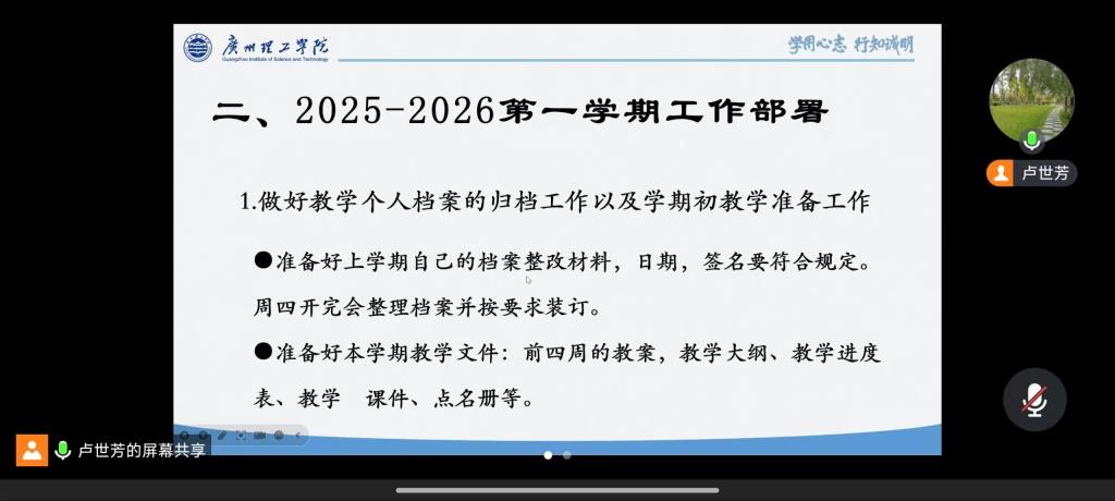 为明确教学工作方向、统筹新学期教学任务,伟德国际1946数理部工程数学组于 2025 年 9 月 9 日20:00召开了 2025-2026 学年第一学期第一次线上会议。工程数学组全体任课教师参会,会议由卢世芳教授主持,围绕上一学期工作总结、本学期工作部署及教学质量提升议题展开深入交流,为新学期教学工作有序开展奠定基础。