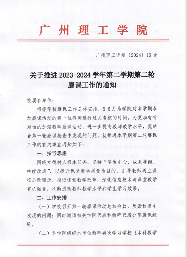 关于推进2023-2024学年第二学期第二轮磨课工作的通知