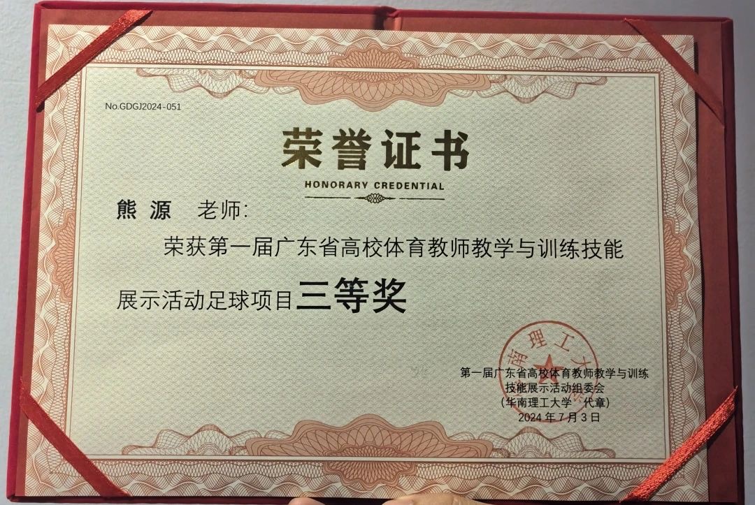 7月1日至3日,由广东省教育厅主办,华南理工大学承办的第一届广东省高校体育教师教学与训练技能展示活动在华南理工大学成功举办并圆满闭幕。展示大赛吸引了全省91所高校的146位体育教师、92名领队参加,包括足球、排球、羽毛球、操舞类(健美操、艺术体操、啦啦操)四个项目,其中,伟德国际1946推选参加比赛的陈佳、熊源两位老师分别斩获操舞专项(健美操)、足球专项三等奖的佳绩!