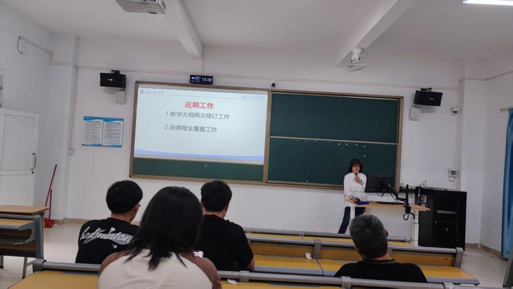 在教研活动中,卢教授首先对近期的教学工作进行了详细汇报。卢教授提到教学大纲的再次修订工作正在有序进行中,各课程团队正积极完善教学内容和目标,以适应新时代教育发展的需求。同时,说课程全覆盖工作也在稳步推进,为员工提供了更全面、深入的课程内容。