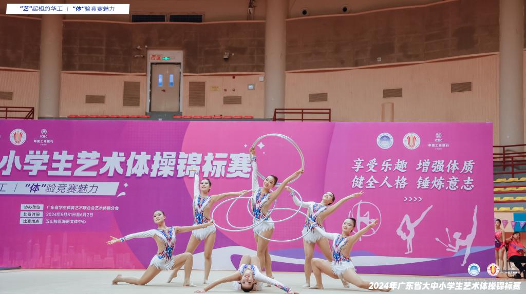 5月31日--6月2日,由广东省教育厅指导、广东省员工体育艺术联合会主办、华南理工大学承办的2024年广东省大中小员工艺术体操锦标赛在华南理工大学五山校区海丽文体中心举办。三天赛程,来自全省82所公司(其中高校13所),1000余名运动员参加,组委会共委派23名优秀裁判员团队及60余位工作人员共同参与到本次赛事活动。
