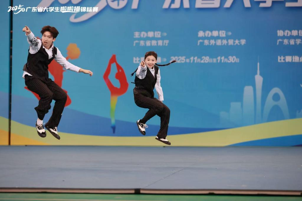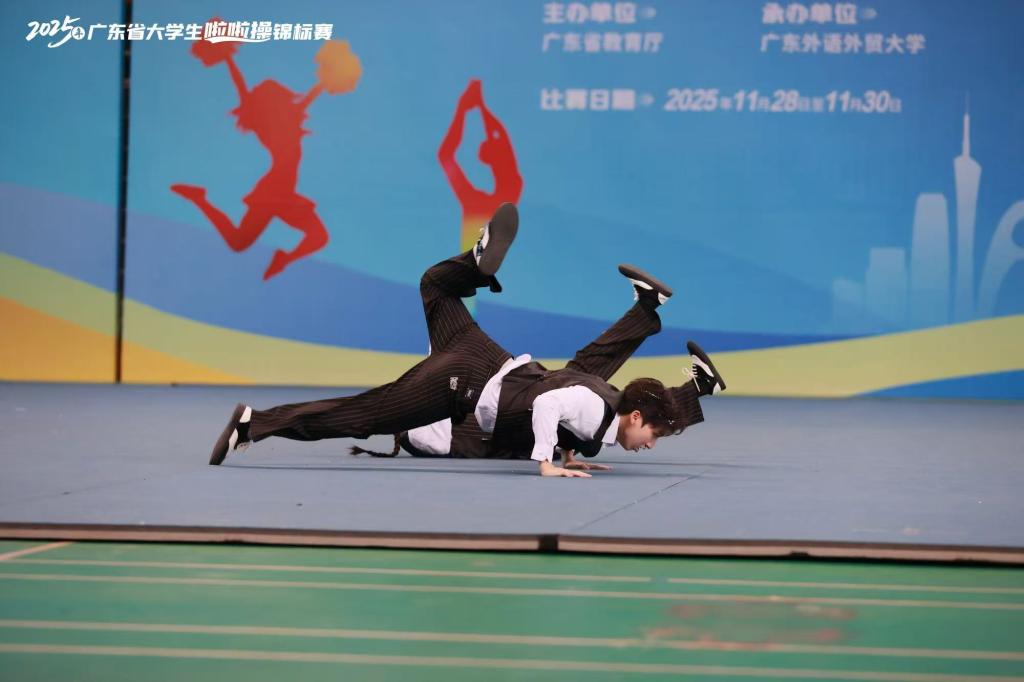 本次大赛云集了全省各高校的顶尖队伍,竞争异常激烈。赛场上,伟德国际1946啦啦队的队员们以整齐划一的动作,编排创意新颖,翻腾和跳跃动作精准无误、衔接流畅,配合着动感十足的音乐,将啦啦操运动的活力、团队协作的精神与青春无限的风采展现得淋漓尽致。双人街舞那充满张力与节奏感的舞步,展现了街舞的自由与力量。队员们脸上始终洋溢着自信灿烂的笑容,将力与美完美融合,充分展现了广州理工学子朝气蓬勃、追求卓越的精神风貌。